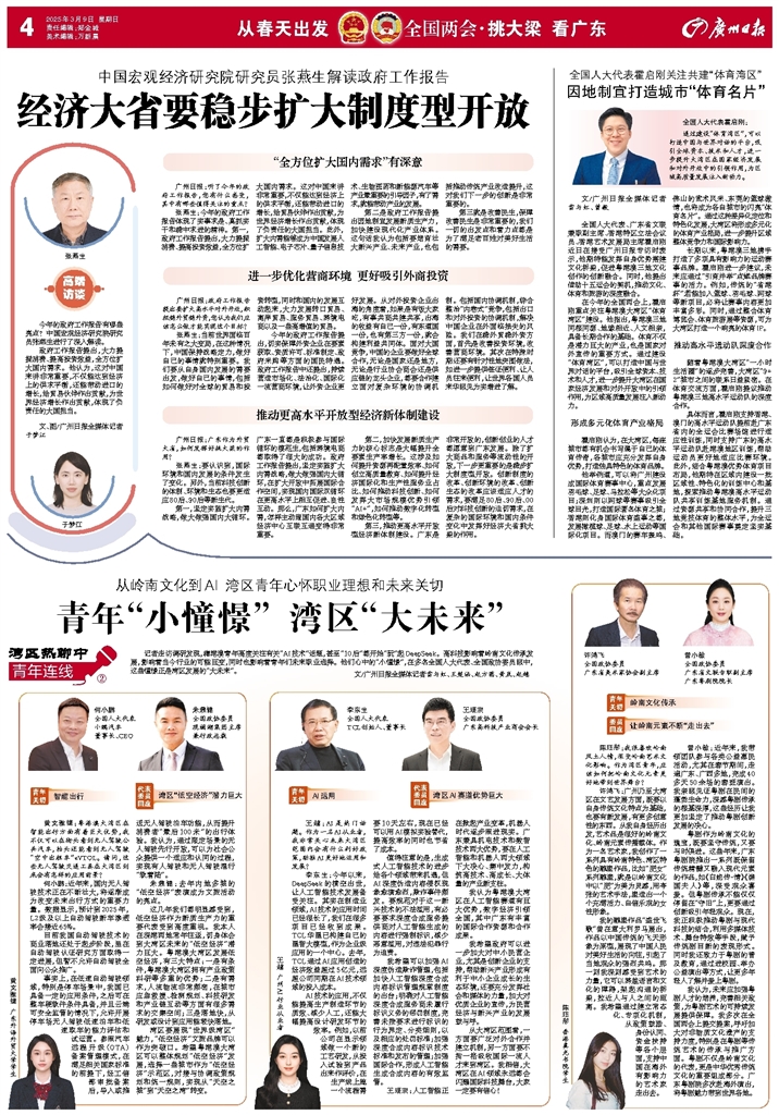 - 因地制宜打造城市“体育名片” 全国人大代表霍启刚: 通过建设“体育湾区”,可以打造中国与世界对话的平台,吸引全球资本、技术和人才,进一步提升大湾区在国家经济发展和对外开放中的引领作用,为区域高质量发展注入新动力。 文/