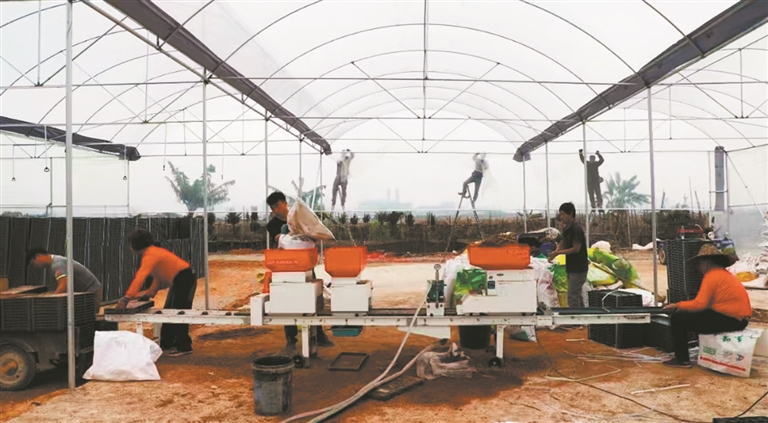 广州日报讯 (全媒体记者马骏 通讯员马驰摄影报道)人勤春早,万象“耕”新。记者昨日从麻涌镇了解到,一幅生机勃勃的春耕画卷正在该镇千亩农田的育秧大棚里徐徐展开——机器自动化操作1小时便能完成600—800盘秧苗,棚内配套的喷淋系统既能有效调温又能让喷洒更均匀,培育出来的秧苗整齐、健壮。