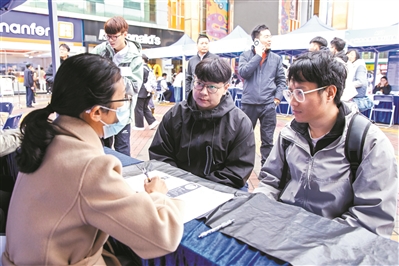 学习机械设计制造与自动化的本科生陈万禄,毕业后曾在外省一家精密制造公司工作,工作大半年后来到广州工作。今年春节后,他来到广州首场市区联动的大型招聘活动上寻找更好的机会。招聘会上,280多家企业求贤若渴,拿出了上万个优质岗位虚位以待,涵盖了先进制造业、现代服务业、科技服务、人工智能、现代商贸、物流与供应链等领域。“这里选择很多!企业提供的工作环境、薪资情况和福利待遇都符合我的要求。”很快,小陈便成功投递了四五家企业,“我希望找一份机械工程师的工作,如果可以的话,希望过几年能在这里买一套房子!”小陈对未来充满憧憬。
