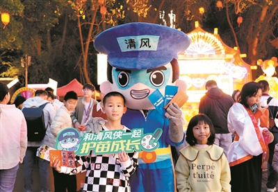 多维场景融合,红色文化焕发时代新光。在“英雄花开英雄城”活动现场,歌曲、舞蹈、朗诵等多元节目精彩纷呈。粤港澳大湾区灯会主会场灯火辉煌,南沙区以一场融合红色文化、群众艺术、知识科普的立体化宣传活动,展现出深厚的文化担当。以灯会园区五大舞台为主阵地,“清风侠”与市民群众一同唱响《我和我的祖国》,激昂的红色旋律回荡在广场上空。在“红色故事会”环节,“清风侠”化身“知识考官”,抛出“护苗行动具体是什么?”“哪些行为属于侵权?”等问题,市民们积极抢答,让政策法规在轻松愉快的氛围中深入人心。“红色影像会”循环播放“护苗”公益宣传片,让市民在感受红色文化的同时,将“绿色阅读、文明上网”的理念深植心间,成功打造红色文化新场景,赋予红色文化鲜活生命力。
