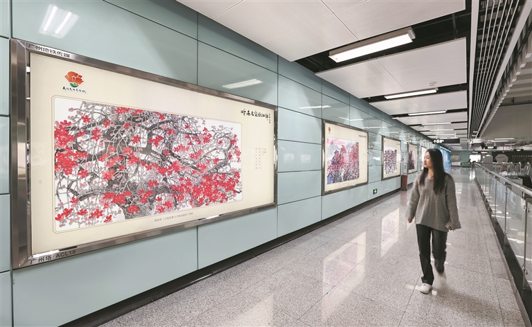 据了解,2025“英雄花开英雄城”系列展览陆续在广州塔、团一大广场、陈家祠、文化公园、磨碟沙、石围塘等地铁站推出,汇聚名家大众“咏红棉”“绘红棉”“拍红棉”“读懂广州”“全运律动”等不同主题的诗词、书画、摄影作品,打造“湾区轨道文化长廊”。