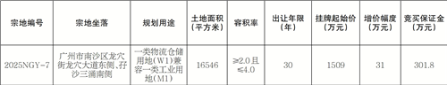 经广州市南沙区人民政府批准,广州市规划和自然资源局南沙区分局公开挂牌出让1宗国有建设用地使用权。