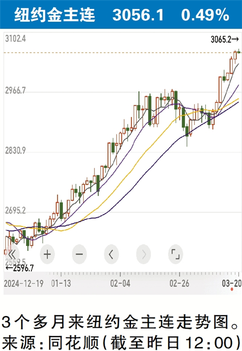 广州日报讯 (全媒体记者 许晓芳)3月19日,金价新高后陷入震荡,在美联储主席鲍威尔发表讲话后继续冲高,期货黄金一度破3060美元/盎司大关,再次刷新历史纪录。