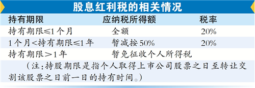 有金融业内人士提醒,若投资者买入时间过短的话,需要支付较高的股息红利税。建议投资者要尽量选择有能力长期稳定分红的股票。
