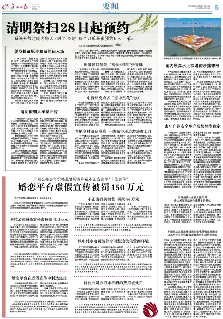 - 清明祭扫28日起预约 文/广州日报全媒体记者罗磊(除署名外) 3月20日是“春分”节气。随着本地天气晴好,气温回暖,春季旅游预订也进入“全面提速期”。记者从各大旅游企业和在线平台获悉,“赏花踏青”搜索量大幅增长