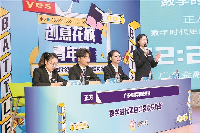 从首届四所高校参与扩大到去年的大湾区十四所高校参与,近千名大学生在版权的号召下思辨青春。今年,在“创意花城”版权宣传品牌体系下,赛事提质升级为“创意花城·青年辩”主题活动,持续打造展现版权与青年融合互动的辩论舞台。赛事紧扣版权领域前沿设置辩题,始终坚持公平合理的赛制、专业权威的平台、多元的配套活动,联动多部门、联合多地区、融合多产业,以辩论为媒介推动青年对版权议题与社会热点的深度思考,近年来逐渐成为社会关注的品牌辩论赛事活动。