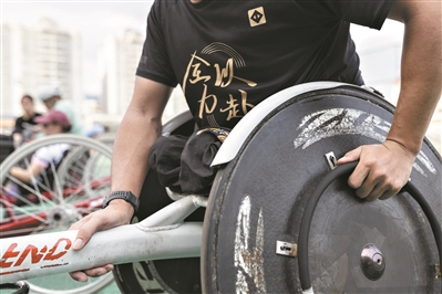春天的广东,草木葳蕤,阳光明媚。肇庆市体育馆的田径场上,他们奔跑着,摇着竞速轮椅,骑着自行车呼啸而过,投下长长的影子。