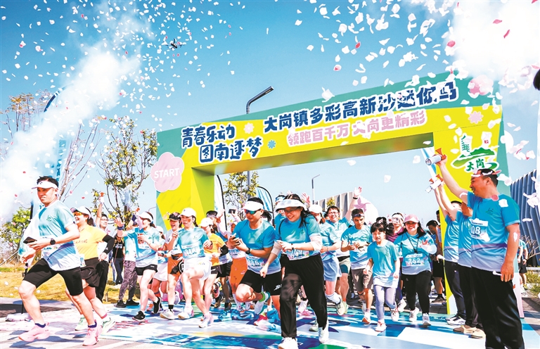 广州日报讯 (全媒体记者 刘幸)南沙区十八罗汉山樱花烂漫绽放之际,以“青春乐动 图南逐梦”为主题的大岗镇多彩高新沙迷你马拉松活动上周日在粤海湖生态绿廊鸣枪开跑,参赛者们春日逐光,强健之姿与水乡生态融为一体,筑起一道活力平安之墙。