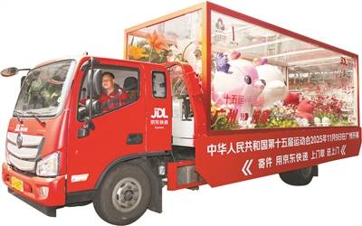 记者看到,全运花车是由物流车改造而来,一个硕大的玻璃货柜里,广州木棉与波密桃花分居左右,簇拥着十五运会和残特奥会吉祥物“喜洋洋”“乐融融”。据悉,这辆全运花车由京东物流提供,为保障花车能顺利完成这趟春日之旅,京东对花车做了特别的设计。京东物流华南相关负责人尚小锋告诉记者,考虑到广州与西藏的温差,花车的玻璃经过技术加工,能消除温差给玻璃内物品带来的影响;轮胎也能确保花车在温度、地理、气压条件独特的西藏正常行驶。更有深意的是,全运花车上还装饰着一些春日气球花,这些气球花是由广州市少年宫的孩子们用木棉和桃花手工制作的,充分体现了广州的诚意。花车在到达波密后,还会进行一些展出,并参加桃花节、露营音乐会等“十五运·十五城”波密站的一系列活动。