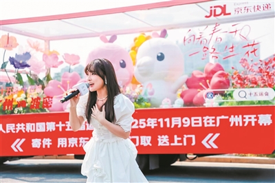 “我希望许过的愿望一路生花,护送那时的梦抵挡过风沙,指尖的樱花如诗写谁的韶华,疯狂的热爱夹带着文雅……”随全运花车一同从广州驶向波密的还有广州出品的“神曲”《一路生花》。酷狗音乐人、《一路生花》原唱温奕心也来到了发车仪式现场,与广州市少年宫的20位孩子一起现场唱响《一路生花》。据透露,《一路生花》已经推出了粤语版本,不久的未来还会推出结合十五运主题的MV,粤语版本与MV都将伴随全运花车一起在多个地区传递,送出对全运“好运”的美好祝愿。温奕心说:“为全运花车发车助力感到荣幸,希望十五运会也可以顺利起航、一路生花。”