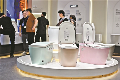 记者探展发现,今年展馆内的卫浴产品呈现“技术+设计”双轮驱动趋势。在产品创新方面,智能马桶的雷达感应翻盖、AI语音操控、全水路除菌等技术引领行业潮流。