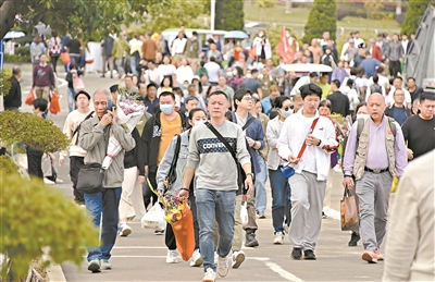 广州日报讯 (全媒体记者肖桂来 通讯员樊芸、谢展鹏、阮汉标 摄影报道)4月4日,广州市番禺祥和陵园迎来祭扫高峰,共有近3万人预约行“正清”,截至当天下午2时,已有近2万人入园。市民践行文明、节俭、绿色、低碳的祭扫理念,寄托对逝者的深切哀思。