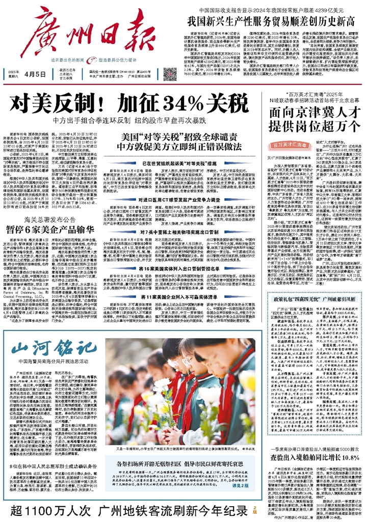 - 对美反制!加征34%关税 据新华社电 国务院关税税则委员会4日发布公告称,经国务院批准,自2025年4月10日12时01分起,对原产于美国的所有进口商品加征关税。 公告称,2025年4月2日,美国政府宣布对中国输美商品