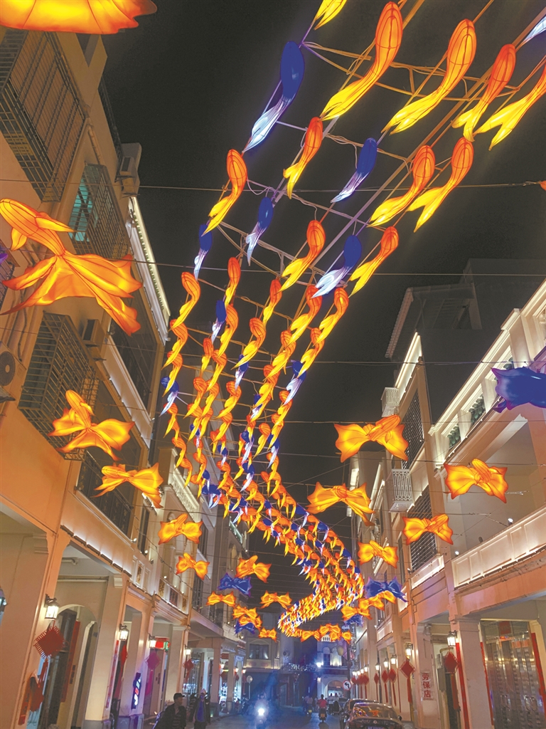 傍晚八时,记者一行走进雷州市曲街历史文化街区,古骑楼、古桥、古牌坊等历史遗迹仿佛将人们带回了“旧时光”。暮色渐浓,曲街灯明,数百米长的老街顿时流光溢彩。“哇!太美了。”游客“咔嚓、咔嚓”拍照声此起彼伏。