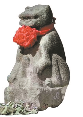 先秦时期,雷州半岛为百越俚僚的聚居之地,狗被视作能够驱邪纳吉的灵物。彼时,石狗雕像作为部落图腾,庄重地立于村口、路口或墓前。唐代,汉人移民大量涌入雷州后,将中原的“人神信仰”(如雷祖信仰)与本土的石狗崇拜结合,逐渐形成了“上拜雷祖,下敬石狗”的多元体系。从此,石狗被赋予了丰富的汉文化元素,如今,在雷州博物馆内,便能看到融入八卦元素的明代石狗雕像。石狗职能也愈发多样,它们蹲伏在村口、路边、巷头以及门旁,不仅能够镇风止煞、求雨护田,还肩负起送子添丁的重任,面容也不再狰狞威严,而是昂首咧嘴,含笑露善的形象。
