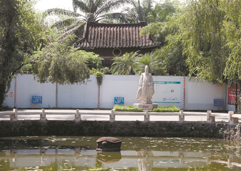 雷州半岛曾是历史上的贬谪地。雷州西湖北侧宋园里,静静立着十贤祠,纪念宋代谪居或贬官路过雷州的名臣。步入祠内,文天祥所撰、姚文田手书的《雷州十贤堂记》碑写道:“敬贤如师,疾恶如仇”,这正是雷州人性格的真切体现。这十位贤能,三位做过宰相,两位当过副宰相。名相寇准最早到雷州,被贬为雷州司户参军。他没因仕途不顺而消沉,反而劝农种桑、修水利,传授天文地理知识,还办学堂传播中原文化,最后逝于雷州。雷州古城的寇公祠,就是为纪念他而建。