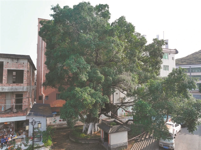 广州日报讯 (全媒体记者刘满元 通讯员陈之武、谢超均摄影报道)清晨的阳光穿透一株364岁的古榕树的树冠,在地上洒下斑驳光影。几位社区长者抚摸着古树的树干说:“老伙计现在有了体面的‘家’。”