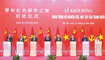 活动后,习近平和苏林、梁强共同启动“红色研学之旅”项目。习近平同苏林、范明政共同见证中越铁路合作机制启动仪式。