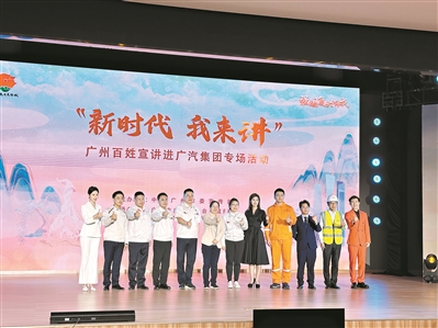 提振“二次创业、勇立潮头”精气神,书写新时代辉煌篇章。4月15日,“新时代 我来讲”优秀百姓宣讲员活动走进广汽。现场,7位宣讲员以“强国复兴有我”为核心,讲述广州以科技创新为依托,不断推进现代化产业体系建设,大力推进高质量发展的奋斗故事。