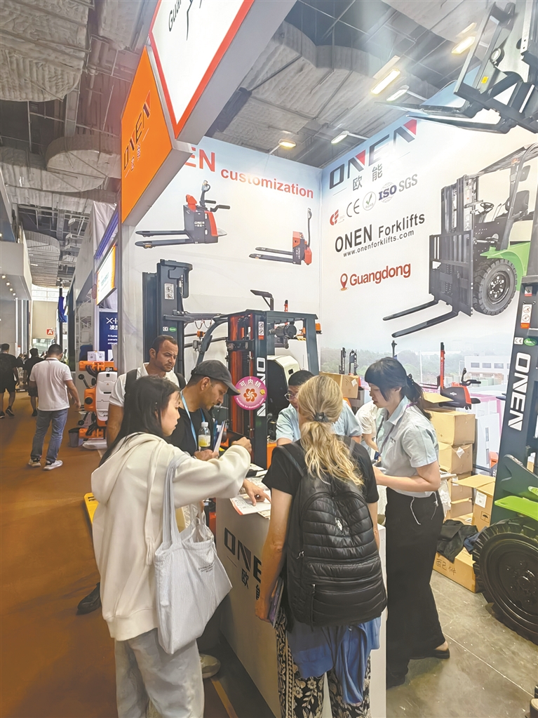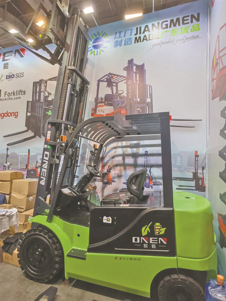 广东欧能新能源设备有限公司总经理廖其章表示,作为台山新能源装备产业集群的领军企业,2024年该公司新能源叉车总出口同比增长87.6%,今年第一季度出口额同比激增108%。新能源叉车在本届广交会上,成为高端装备出海的主力产品。