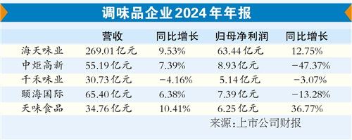 海天味业在其2024年财报中称,2024年,其线下渠道营收238.85亿元,同比增长8.93%。线上渠道营收12.43亿元,同比增长39.78%;天味食品2024年公司的线上营收大增51.70%至5.96亿元,营收占比也提升至17.18%。仲景食品在年报中称,2024年度,电商渠道实现销售2.45亿元,同比增长29.86%。
