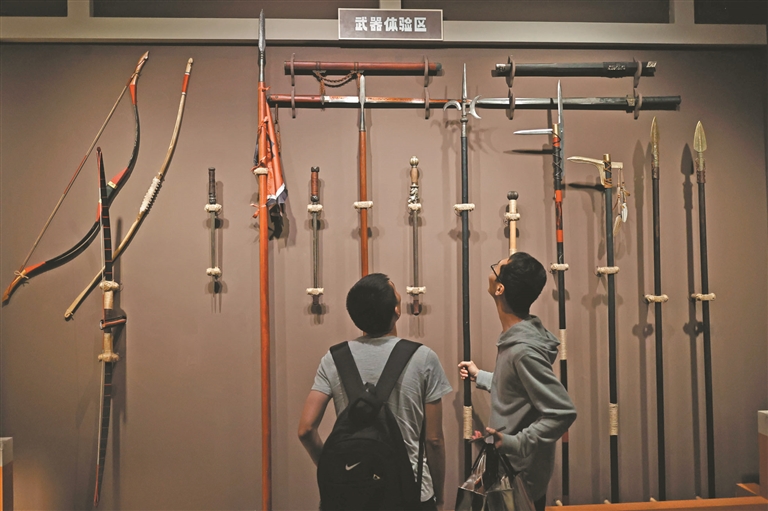 汉时,韦杜两大家族以读书治学、任官治民为主。到了三国至魏晋南北朝,两大世家又涌现出杜预、韦孝宽等名将,建立起赫赫战功。 三国时期的名臣兼名将,率军灭吴、结束三国分裂局面的杜预,在灭吴的过程中所说“今兵威已振,譬如破竹,数节之后,皆迎刃而解,无复著手处也。”这就是成语势如破竹的最早来源。 又如,西魏将领韦孝宽,南北朝时期,还有韦彧、韦瓘、韦彪、韦皋……韦杜家族从汉代的文治走向魏晋南北朝的武勋,展览中设有“武器体验区”,让观者现场感受兵戈铁马。 隋唐时期,韦杜家族为官者如云,唐初名相杜如晦以“房谋杜断”著称,韦氏九大公房中多位成员担任宰相,如韦安石、韦贯之等。韦氏多位成员成为皇后、妃嫔或娶公主,杜氏也有名臣与皇室结亲。