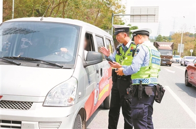 4月12日4时30分,广州交警在绕城高速石湖站入口现场拦截一辆超员且涉嫌非法营运面包车。经查,该车核载9人、实载11人,超员2人。司机潘某向每位乘客收取车费400元,从河南开往广州、东莞。广州交警对司机潘某超员载客违法行为罚款200元、记6分,同时将其涉嫌非法营运问题移交交通运输部门调查处理。
