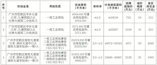 经广州市花都区人民政府批准,广州市规划和自然资源局花都区分局以挂牌方式出让4宗国有建设用地使用权。现将有关事项公告如下: