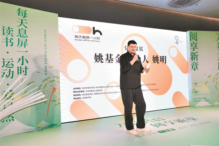 “我们不反对科学进步,不反对数字化工具带来的便利,但需要平衡线上与线下的生活。”4月23日,姚明现身深圳,为深圳发出的“每天息屏一小时”倡议站台。当日,第30个世界读书日暨第10个深圳未成年人读书日系列活动在深圳图书馆北馆启动。启动仪式上,深圳率先面向全社会发布了一份名为“每天息屏一小时、读书运动爱自然”的倡议。全国人大代表姚明在现场呼吁深圳全体市民和自己一起身体力行响应倡议,放下手机,用更多的时间去读书、运动、体验自然。