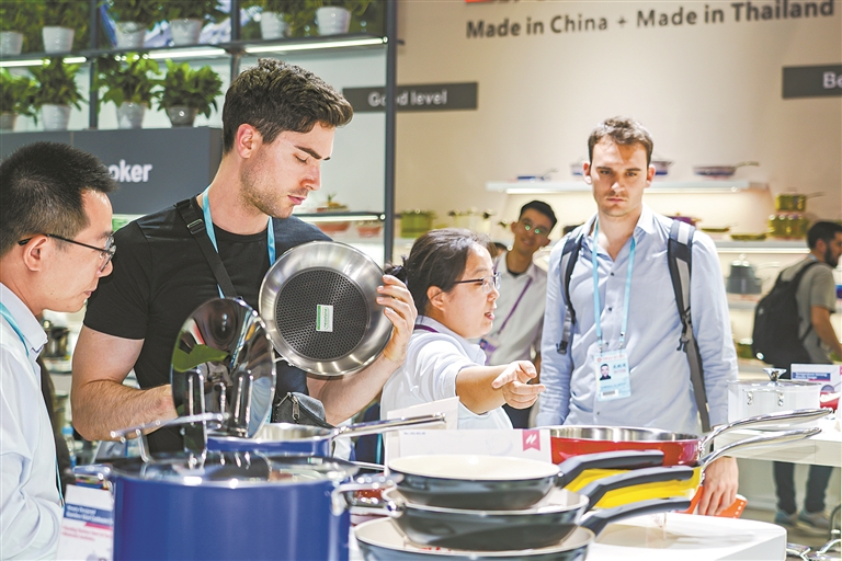 八角汤锅、贝壳煎锅、幻彩水杯、轻盈刀具……广交会二期的第二天,多用途的厨房用具“圈粉”境外采购商。记者走访发现,来自欧洲、东南亚的客商对这些厨房用具啧啧称赞:纷纷表示“中国产品的创新思维很活跃!”“质量好,价格划算,达成合作机会很高!”宁波参展企业卡特马克智能厨具有关负责人表示,广交会是个国际大课堂,企业在这里不仅能了解市场动态、产品流行趋势,还能紧跟国际标准更新的步伐,在出海时能以创意制胜。