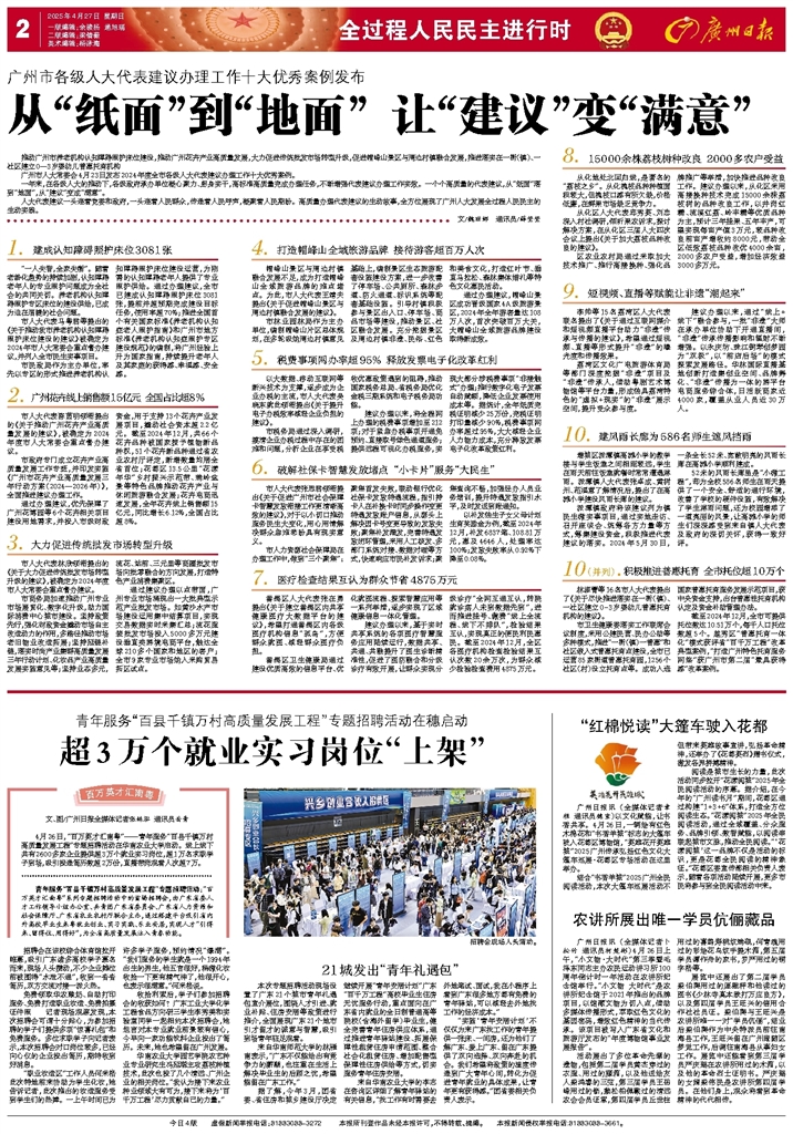 广州市人大常委会4月23日发布2024年度全市各级人大代表建议办理工作十大优秀案例。