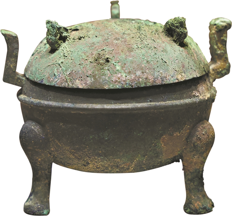又如越式铜鼎。南越王墓出土越式铜鼎17件,其中西耳室2件,后藏室15件。秦统一岭南后,一些身怀技艺的中原匠人来到了岭南,青铜器及其铸造工艺也随着南越国与中原的交往,传到了岭南。岭南越族吸收了汉及与其毗邻的楚、滇的文化因素,创造了具有自身特征的越式青铜文化。