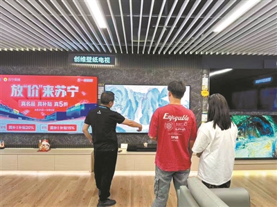 根据广州市目前的“以旧换新”政策,一级能效的电视选择10000元左右最划算,能够享受最高2000元的补贴。“五一”假期是换新电视的好时机,因为选择更加丰富了,其中还有不少新品。某线下家电卖场里就有超30款电视新品首发,比如提供院线级影音体验的百英寸巨幕电视,将电视如壁画般融入墙面、提升家居品位的壁纸电视,如同一位“好看的帮手”,可以修复老照片、定制旅游攻略的治愈系AI电视等,都是换新的热门产品。苏宁易购数据显示,2025年一季度,85英寸及以上大屏彩电销售占比已超五成,AI交互功能成为核心需求。结合相关“以旧换新”政策,电视可享15%~20%的换新补贴,单件商品至高补贴2000元。目前,AI智能电视的高端产品普遍在万元级别,可享最高2000元补贴。