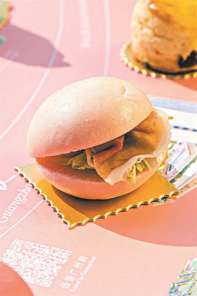 此外,融合创意西式甜点与经典粤式点心的下午茶,也能让食客感受点心师们的巧思妙想。粉红迷你风干火腿堡,樱花粉面包内夹风干火腿,咸甜平衡间尽显夏日轻盈。