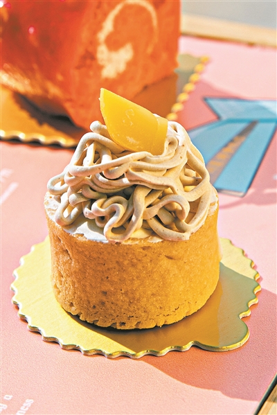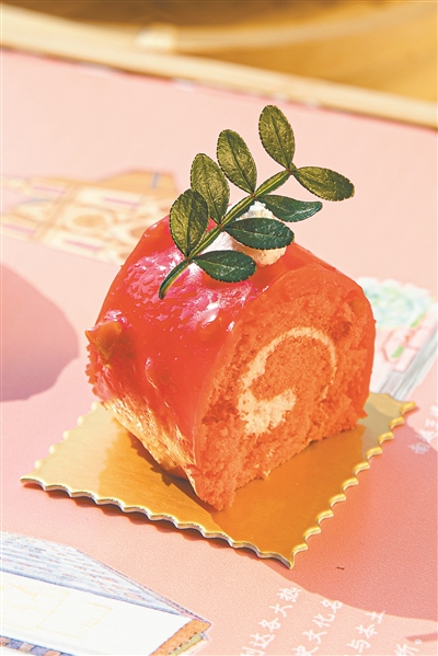 在“乐享”篇,香草椰子桃子慕斯以天蓝色方形蛋糕为底,宛如春日晴空般纯净明亮,轻轻切开,内里是层次分明的香草椰子慕斯与清甜桃子果肉,香草、椰子和桃子的香气交织,口感轻盈细腻,仿佛将春日的温柔与甜美尽收口中。