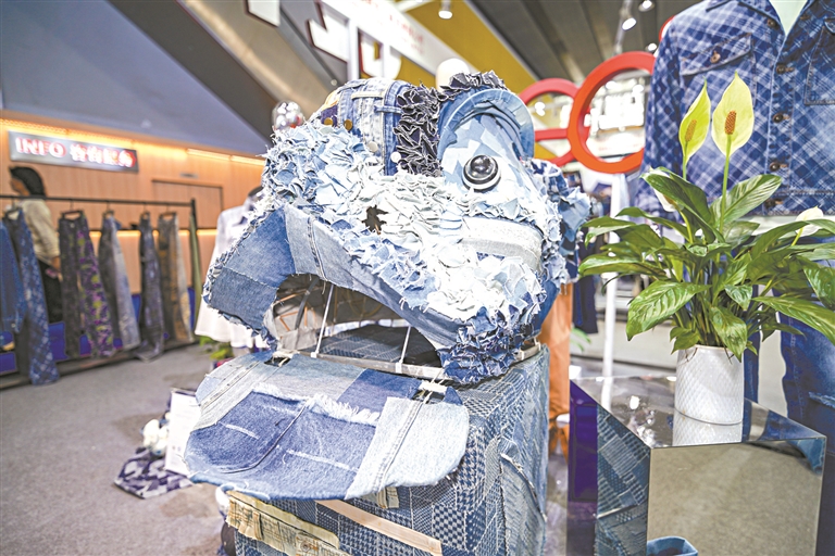 在广州纺织品进出口集团有限公司展位上,一只用牛仔面料立体拼接而成的南狮狮头又潮又酷,成为境外采购商的打卡点。据了解,作为“老广交”,本届广州纺织仅牛仔品类就带来了超过300个款式,瑜伽运动系列则有200多个款式,新品率达到90%。