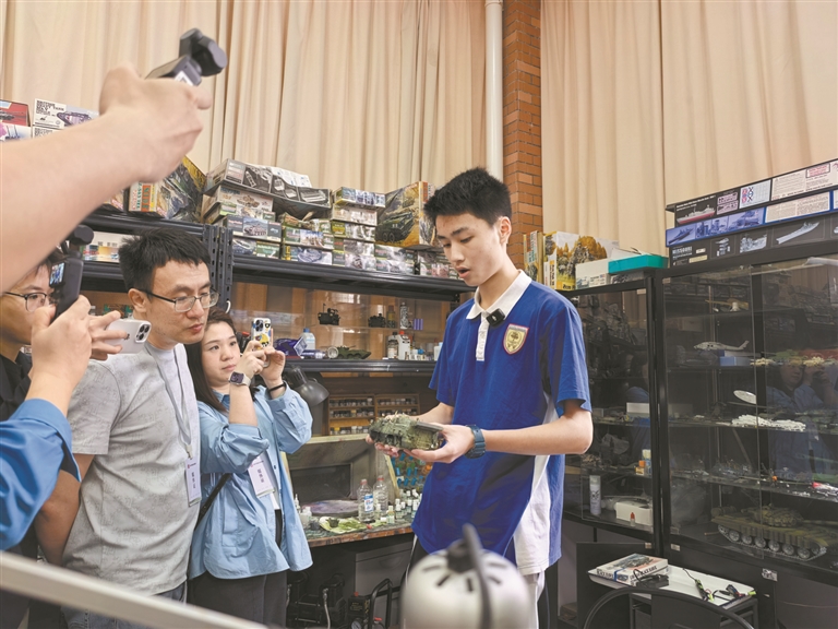 在西浦高中教学楼顶楼,有一间微缩艺术工作室,学生创作的微缩作品在展会上闪光,不仅在深圳国际会展中心、宝安科技馆、盐田图书馆、招商蛇口邮轮中心展出,还漂洋过海走向了国际,在日本静冈模型展上大放异彩。工作室主持人王毅老师介绍,这个工作室成立于2015年,每一件作品的一榫一卯里都倾注着各届学生的心血。在做手工的过程中,不仅是在培养学生的动手能力,更是在培养专注的态度。