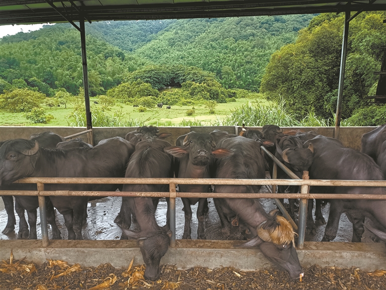 “水牛奶味道浓郁、爽滑醇香,蛋白质和脂肪都比人们熟知的黑白花奶牛高。但由于水牛奶产量只有花奶牛的五分之一,所以成本很高。”何志连为了给工厂持续供应水牛奶,专门在四会开了一家占地70多亩的奶牛场,养殖水牛100多头,每天产水牛奶约1吨。凌晨4点,工人就将水牛奶挤出,6点开始冷链货车上路,8点运抵番禺工厂,24小时内生产完成。