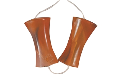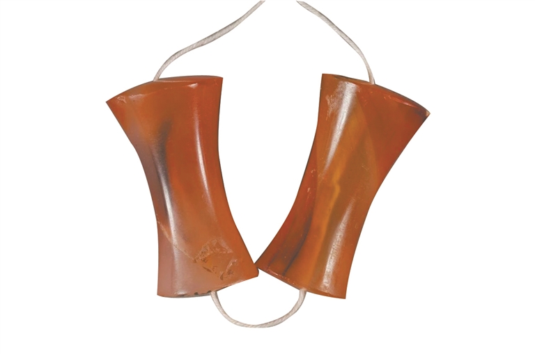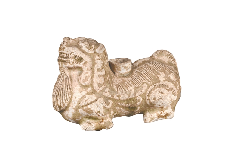 霍雨丰介绍,相比两汉墓葬,晋墓最大的特点是随葬品逐渐简化,尤其是汉代流行的各种饰玉、葬玉消失,广州两晋墓葬亦然,但仍出土各式金饰和琉璃珠饰,它们是晋代贵族主要的装饰品。展览中展出的一件金小狗出土于西村孖岗,可能是钉结于一件器物上的饰品。小狗形体较小,憨态可爱,身上镂刻的线纹已经摩擦平滑,应为物主时常佩戴所致,可见是其生前的爱物。