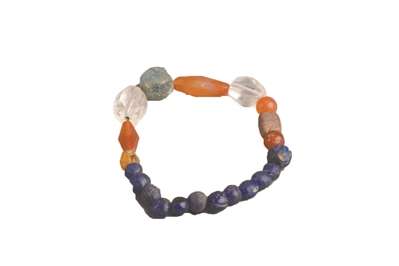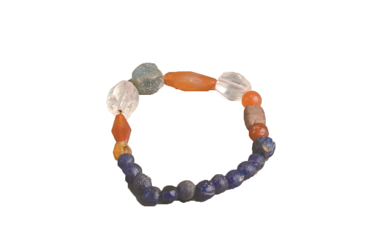 也有崛起的新贵。1955年在横枝岗发现一座西汉中期大墓,墓主为癰(yōng)顺意。墓中出土了精美的玛瑙水晶珠饰。西汉时期海上丝绸之路繁盛,大量珠饰涌入番禺,成为贵族间流行的“奢侈品”。汉至南北朝时期,玛瑙一直深受贵族喜爱,曹丕还曾写《玛瑙勒赋》颂之。1953年龙生岗43号墓出土了彩蓝琉璃446粒、浅蓝琉璃937粒、紫色珠537粒,共计1920粒。类似数量巨大的珠饰还见于荔湾区西湾路旧铸管厂西汉墓,可能是用于殓葬的珠襦串饰。它们都说明了墓主身份不凡。