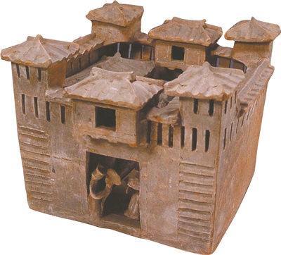 东汉时期,一些贵族阶层大力开发农业种植,积聚大量财富,逐渐形成拥有大庄园、私人部曲的豪强大地主,他们多居住在番禺城东北郊、南郊一带。他们的墓葬多采用砖石结构,随葬陶城堡、陶水田、陶牛马等明器,应是他们生前富裕生活的反映。1956年东山三育路3号墓出土的一件陶城堡,仿若宫殿或城池建筑,高墙围绕,四角都设角楼可观察敌情,两侧有两座城楼,具有瞭望和守卫功能。1955年海珠晓港东侧发现的“梁伯通”墓,出土陶屋、陶井、陶囷,以及陶牛、陶羊、陶猪、陶鸡、陶鹅共10余件,可见家境殷实,应是这一带的大户之家。1960年沙河顶2号墓出土了金银指环、琉璃耳珰以及一件银顶针,墓主生前应是一位生活富庶的女性。