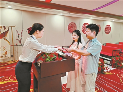 据悉,新修订的《婚姻登记条例》要求将婚姻家庭辅导服务、颁证仪式服务、综合性婚姻家庭服务指导纳入婚姻登记机关工作职责。黄埔区民政局进一步加强婚姻家庭辅导服务,为市民提供婚前辅导、婚姻关系调解、个案服务等,并充分利用现有颁证服务场地和全区十个最美户外颁证服务场所,为新人提供办证服务;优化服务流程,提升便民服务效能。