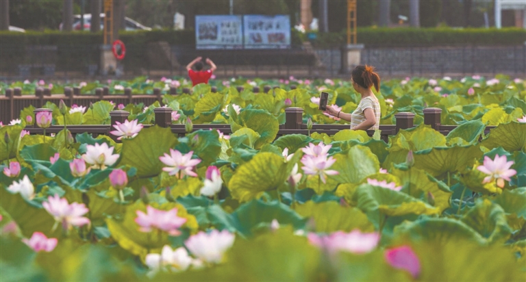风送荷香,夏意正浓。近日,桥头镇莲湖风景区的300亩荷花如约盛放,展开一幅生机盎然、韵味十足的夏日画卷,吸引了大批市民游客纷至沓来,感受荷风莲韵,共赴一场浪漫花事。