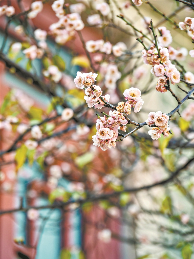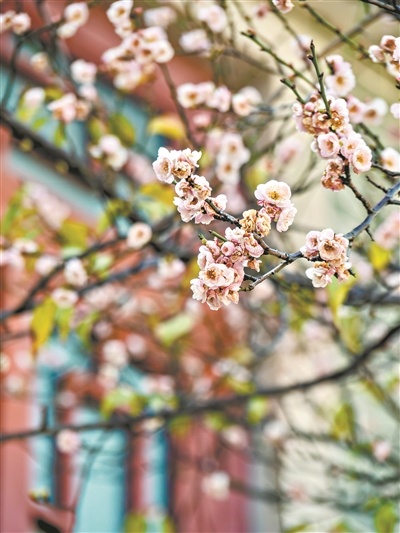 古建筑与梅花相映成趣