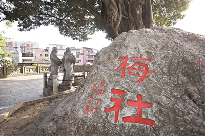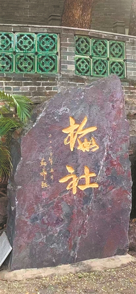 2023年4月,著名书画家林墉、苏华伉俪到访岭南画派·梅社,并分别正式受聘为梅社名誉社长和梅社书画院名誉院长,梁江为梅社学术委员会主任。苏华欣然题写“梅社”,这两个字被刻石于纯阳观内,与易石公在20世纪初题写的“梅社”石刻遥相呼应,如同梅社历史的两个坐标,见证着梅社的发展与变迁。它们的存在,不仅是梅社文化的重要象征,更是岭南文化传承与发展的生动体现。