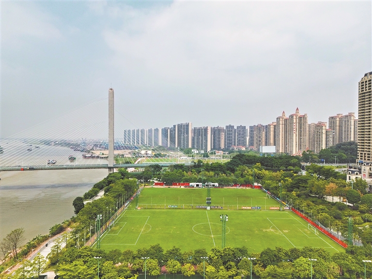 三水大桥底,4块FIFA标准的11人制天然草场如同绿色棋盘,诉说着三水足球的辉煌。黄贤海告诉记者,三水健力宝青训中心每年定期承办包括中国足协、广东省足协在内的各级足球赛事,24年以来已接待职业集训球队超150支。今年1月17日,健力宝足球青训中心暨阿森纳(中国)足球发展中心揭牌成立。“这里需进行提升改造,扩建道路,增加可移动看台、运动员休息室、裁判室等功能房。”黄贤海说,三水的两大场馆已基本符合全运会、残特奥会要求,仅有部分无障碍设施需要在赛前临时设置。