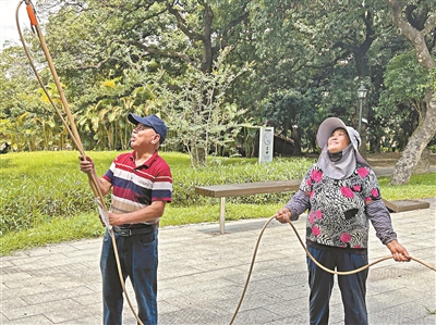 清晨,古荔公园荔枝林蝉鸣阵阵,随处可见高大茂盛的荔枝树,刘多敬戴着斗笠穿梭树间,动作利落地剪除病枝。邝灿林紧跟其后,将妻子剪下的枝条捆扎成堆。“她眼神好,能发现我瞧不见的虫害;我力气大,负责扛肥料。”邝灿林说,两人分工如同荔枝的“甜”与“鲜”,缺一不可。