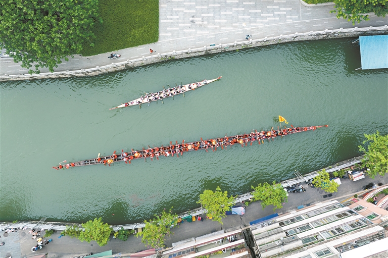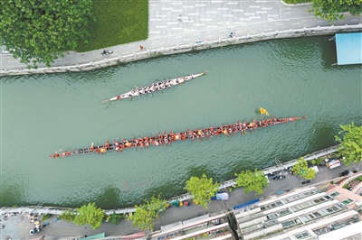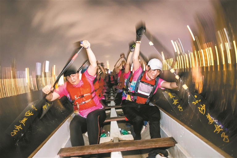 一旦上了龙舟,笑脸会突然收住,神情转为专注。执桡、下腰、插桡、起桡……每个动作都迸发着刚劲的力量,伴随着整齐划一的口号声,龙舟逆水前行,仿佛要在水面上掀起一场“惊涛骇浪”。