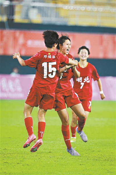 叶欣怡和方珍珠、刘钰可这个广东队“三叉戟”进攻组合在首战就展露出强大的火力。赛后,叶欣怡被组委会评为当场最佳球员。“首战心情很激动,能赢下来很兴奋。这里的场地环境很好,观众氛围也很好。首战赢了之后,大家的心情没有那么紧张,希望接下来越踢越好。”