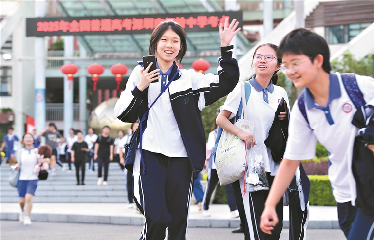 广州日报讯 (全媒体记者王纳、轩慧摄影报道)6月9日,2025年高考到了最后一天,考场外出奇地温馨,很多家庭都是全家出动来接考生,考生们纷纷抱着鲜花离场。